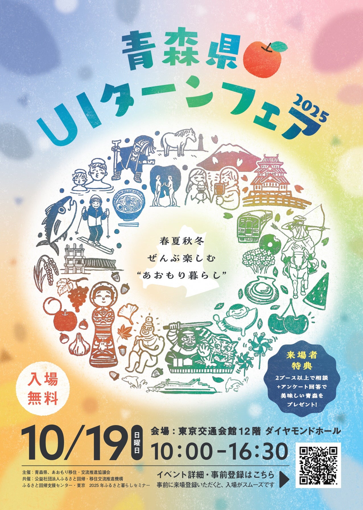 10月19日(日)東京都で開催! 青森県主催イベント「青森県UIターンフェア2025~春夏秋冬ぜんぶ楽しむ"あおもり暮らし"~」